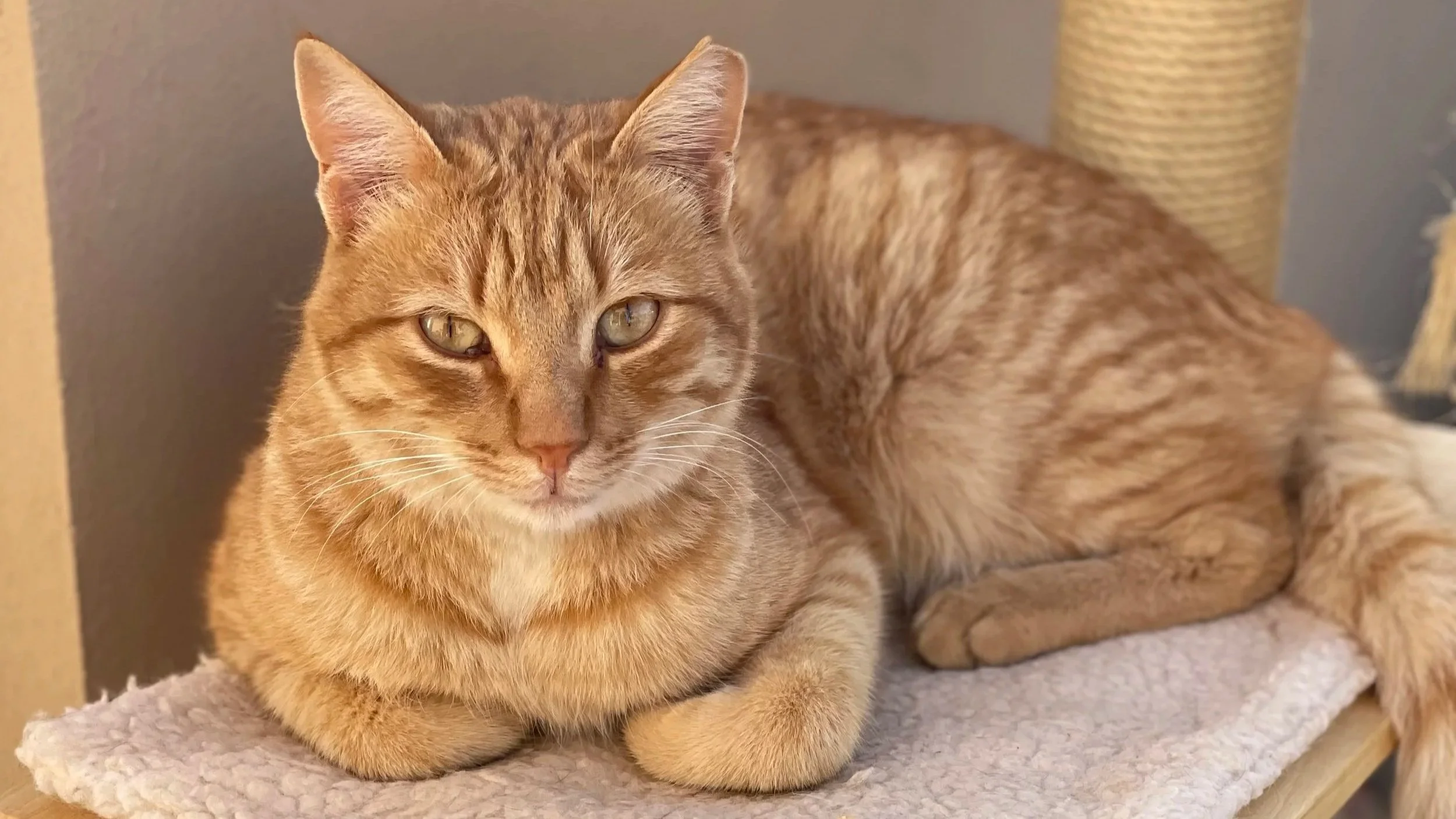 He’s a 4 year old MALE Tabby cat, but born in AlUla. He is for sure the Alpha Male of the team but a very warm and loving cat.
